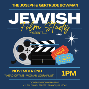 Join us at the synagogue on Sunday, November 2nd at 1pm for “AHEAD OF TIME– WOMANS JOURNALIST”